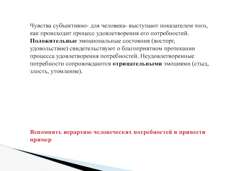 Чувства субъективно- для человека- выступают показателем того, как происходит процесс удовлетворения