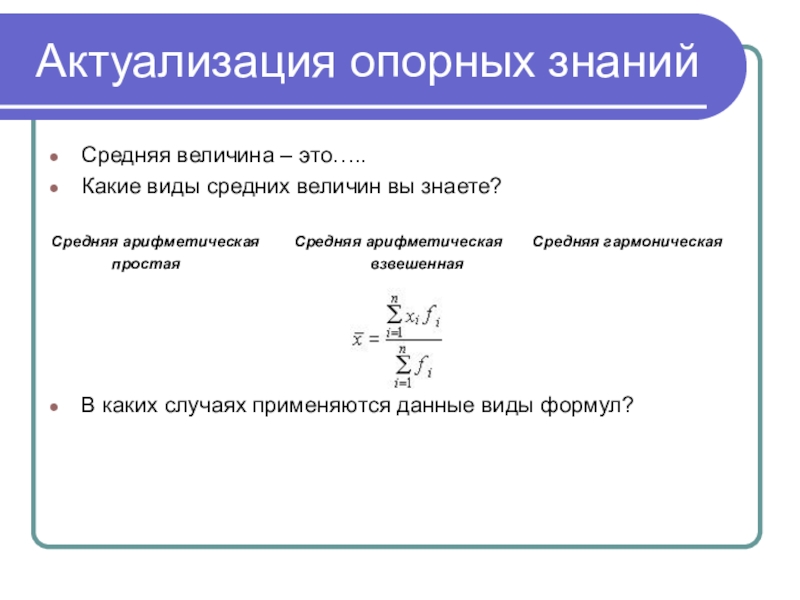 Какие виды средних величин вы знаете?