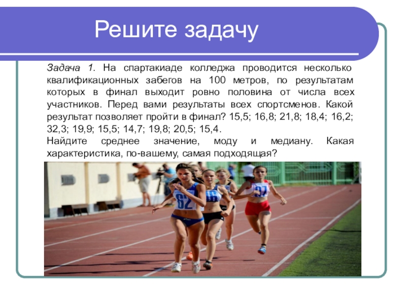 Задача 1. На спартакиаде колледжа проводится несколько квалификационных забегов