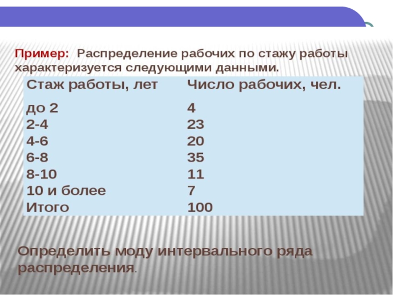 Задача 2. Перед нами ранжированный ряд, представляющий данные о времени