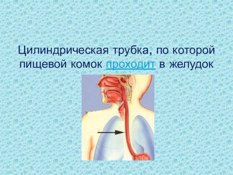 Слайд 25Цилиндрическая трубка, по которой пищевой комок проходит в желудок