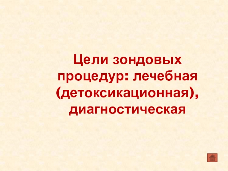 Слайд 54Цели зондовых процедур: лечебная (детоксикационная), диагностическая