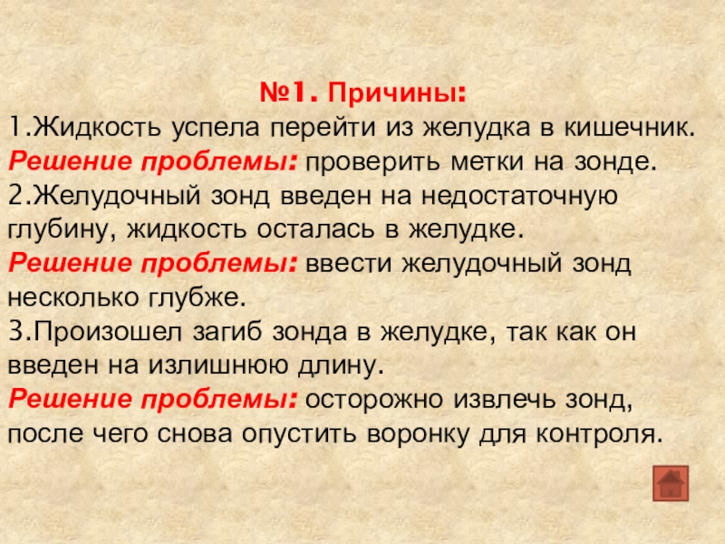 2.Желудочный зонд введен на недостаточную глубину, жидкость осталась в желудке.