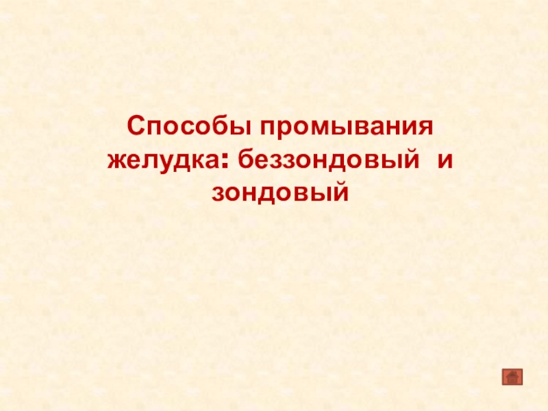 Слайд 57Способы промывания желудка: беззондовый и зондовый