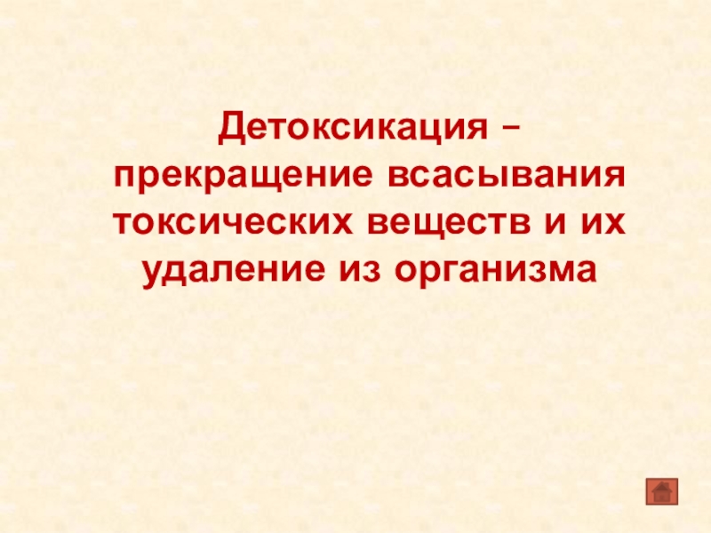 Слайд 55Детоксикация – прекращение всасывания токсических веществ и их удаление из организма