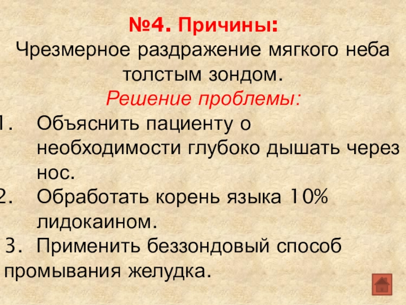 3.Произошел загиб зонда в желудке, так как он введен на излишнюю длину.