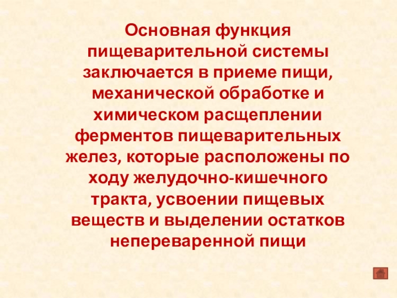 Слайд 48Основная функция пищеварительной системы заключается в приеме пищи, механической обработке и