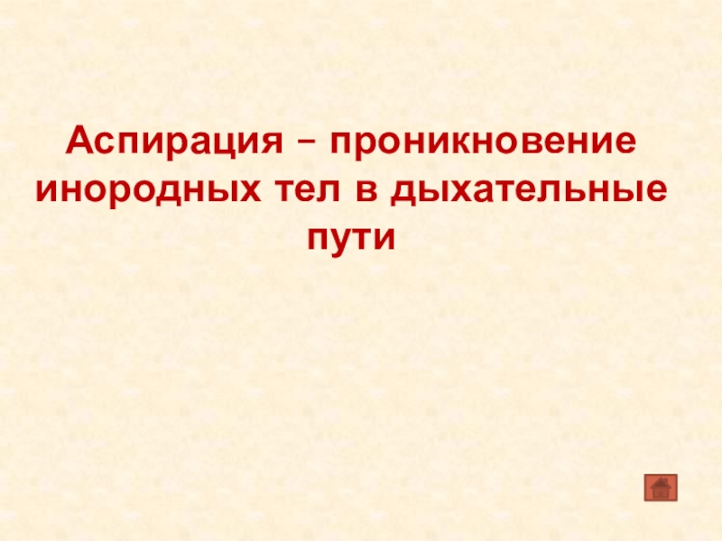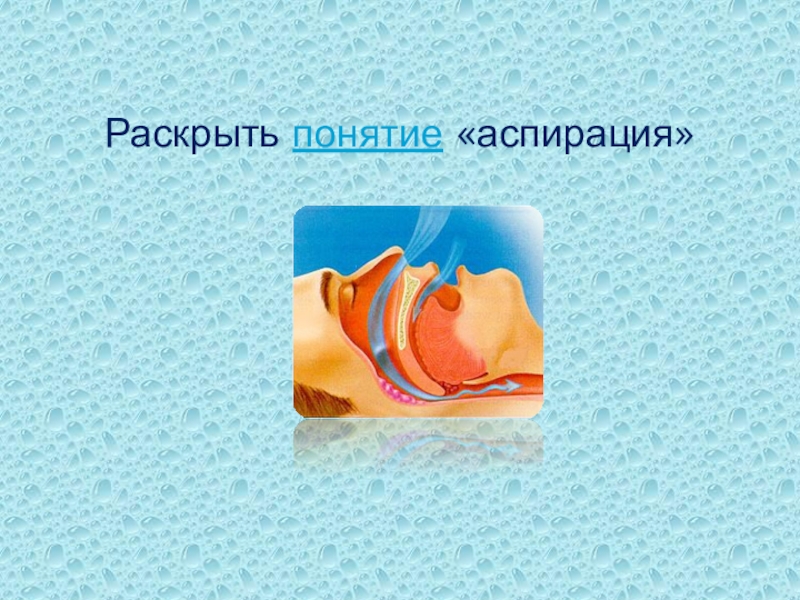 Слайд 52Аспирация – проникновение инородных тел в дыхательные пути