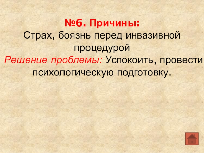 Решение проблемы: Успокоить, провести психологическую подготовку.