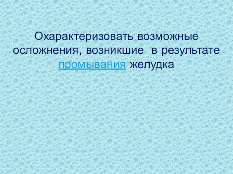 Слайд 38Охарактеризовать возможные осложнения, возникшие в результате промывания желудка