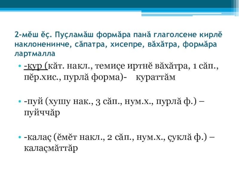 -кур (кăт. накл., темиçе иртнĕ вăхăтра, 1 сăп., пĕр.хис., пурлă форма)- кураттăм