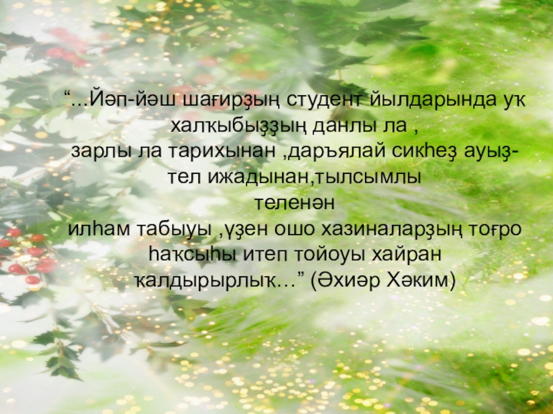 Слайд 7“...Йәп-йәш шағирҙың студент йылдарында уҡ халҡыбыҙҙың данлы ла ,