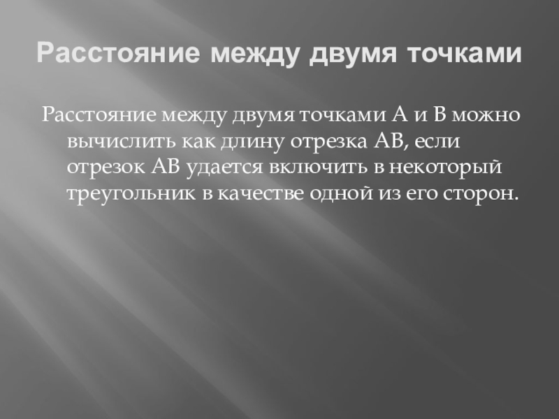 Слайд 7Расстояние между двумя точками