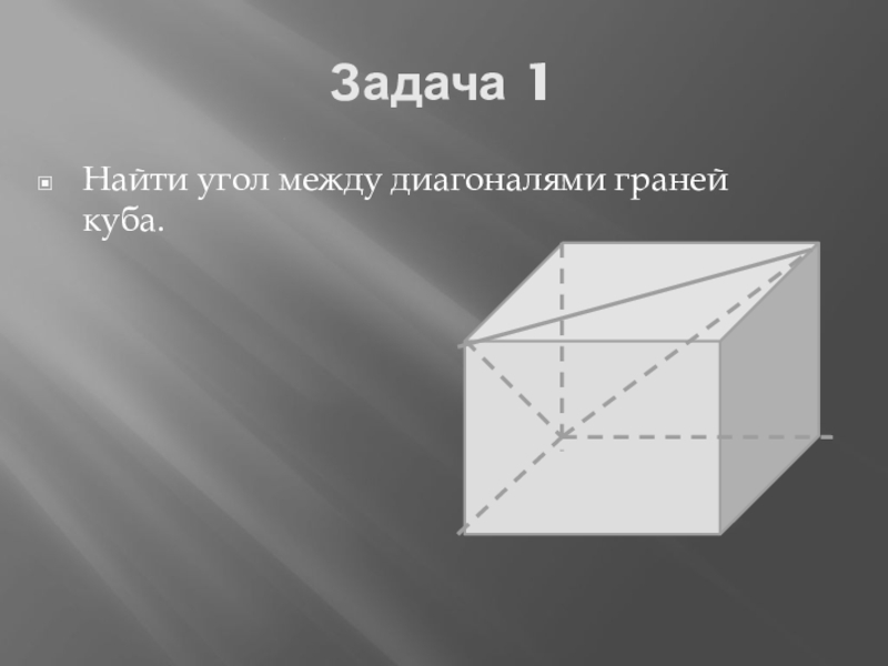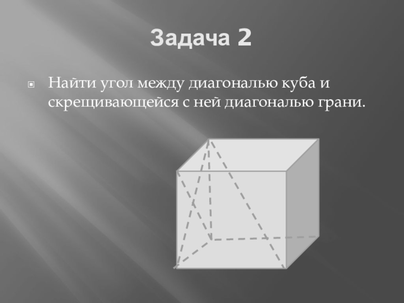 Задача 2Найти угол между диагональю куба и скрещивающейся с ней диагональю грани.
