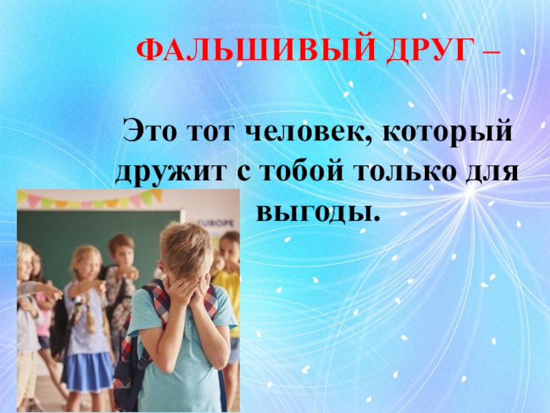 ФАЛЬШИВЫЙ ДРУГ –Это тот человек, который дружит с тобой только для выгоды.
