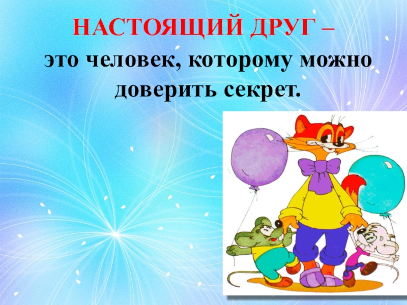 НАСТОЯЩИЙ ДРУГ –это человек, которому можно доверить секрет.
