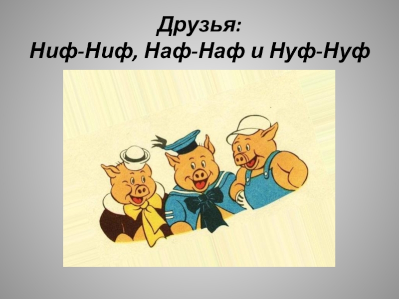 Слайд 12Друзья: Ниф-Ниф, Наф-Наф и Нуф-Нуф