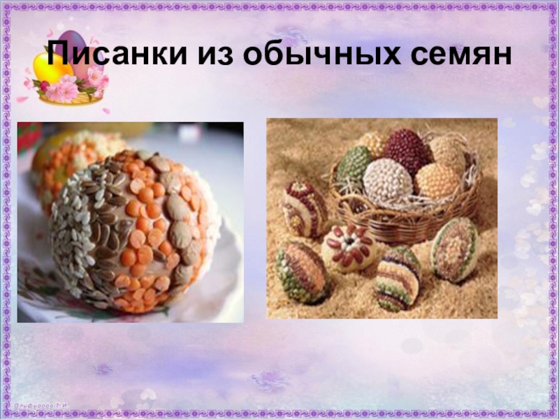 Слайд 15Писанки из обычных семян