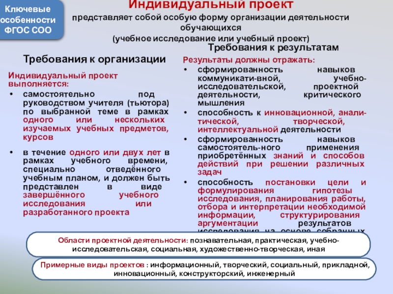 Области проектной деятельности: познавательная, практическая, учебно-исследовательская, социальная, художественно-творческая, иная