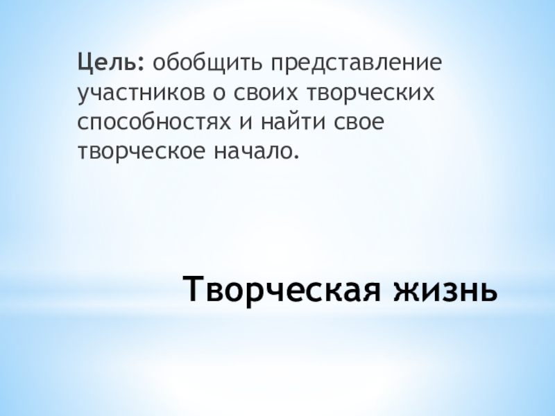 Цель: обобщить представление участников о своих творческих способностях и найти