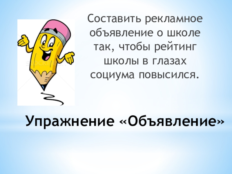 Составить рекламное объявление о школе так, чтобы рейтинг школы в