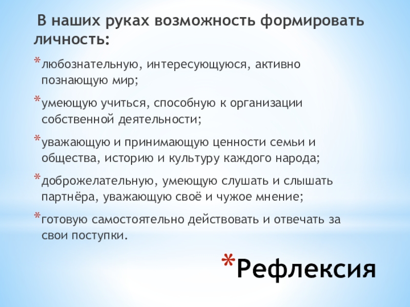 готовую самостоятельно действовать и отвечать за свои поступки.