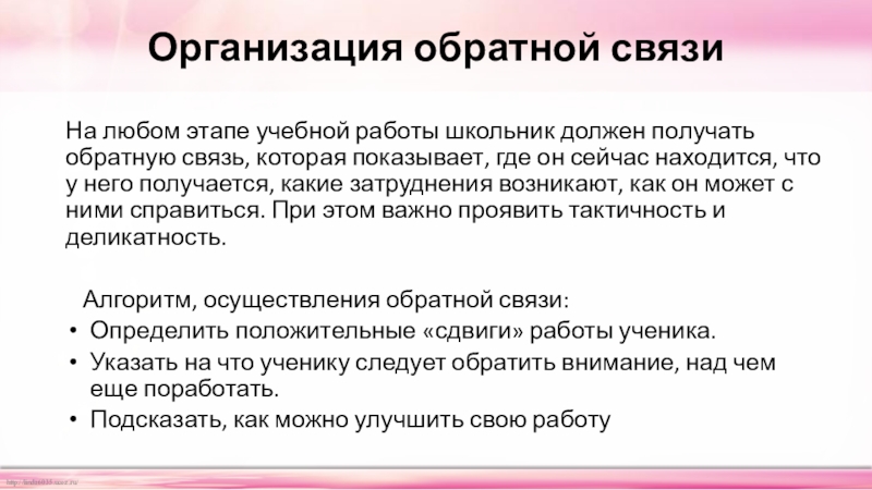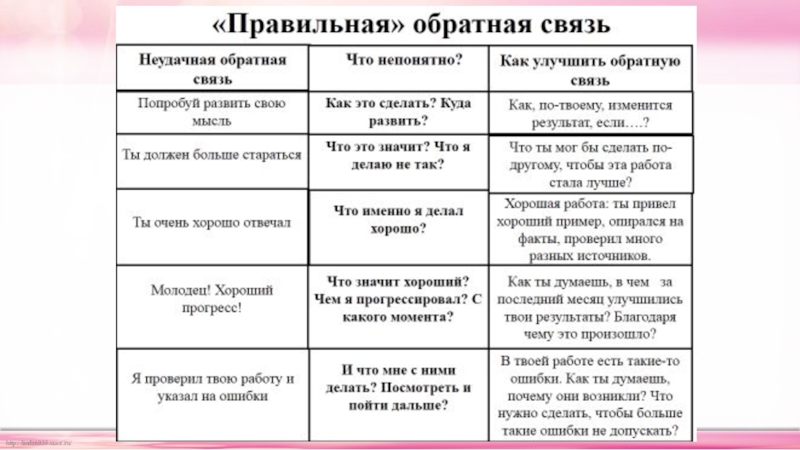 связь, которая показывает, где он сейчас находится, что у него получается, какие затруднения возникают, как он может с ними справиться. При этом важно проявить тактичность и деликатность.