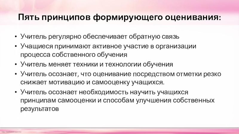 «Формирующее оценивание относится ко всем видам деятельности, которые осуществляют учителя и учащиеся. Оно обеспечивает обратную связь, позволяющую регулировать обучение и учение в интересах учащегося» (Black P. and William D.)