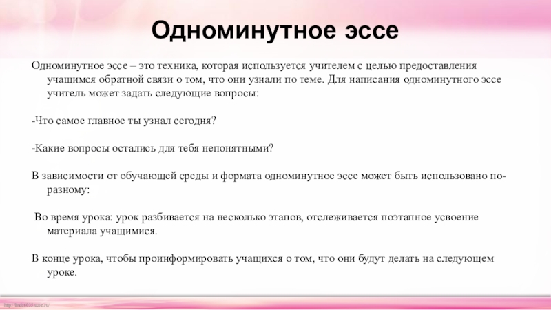 Одноминутное эссе – это техника, которая используется учителем с целью