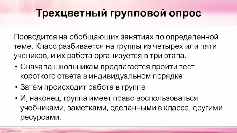 на группы из четырех или пяти учеников, и их работа организуется в три этапа.