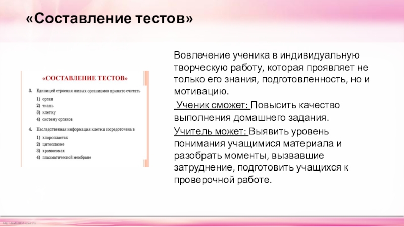 Ученик сможет: Повысить качество выполнения домашнего задания.