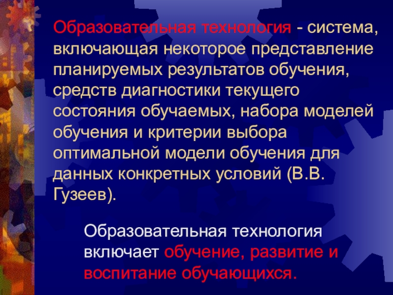 Образовательная технология включает обучение, развитие и воспитание обучающихся.