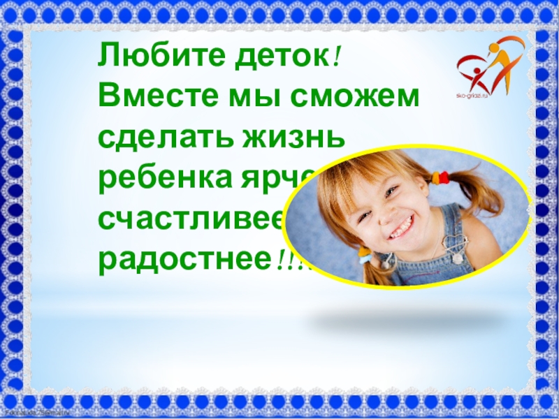 Слайд 33Любите деток! Вместе мы сможем сделать жизнь ребенка ярче, счастливее и