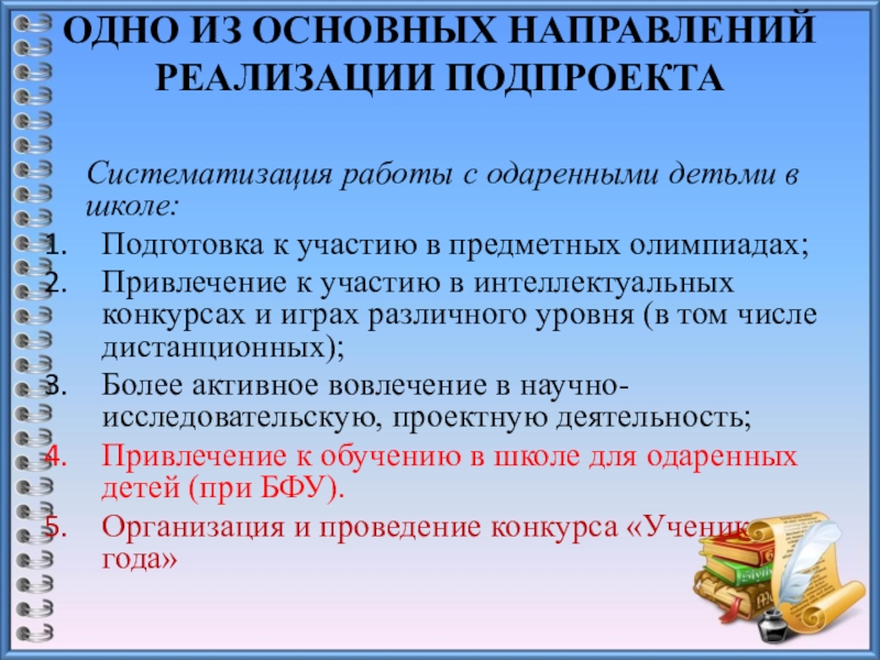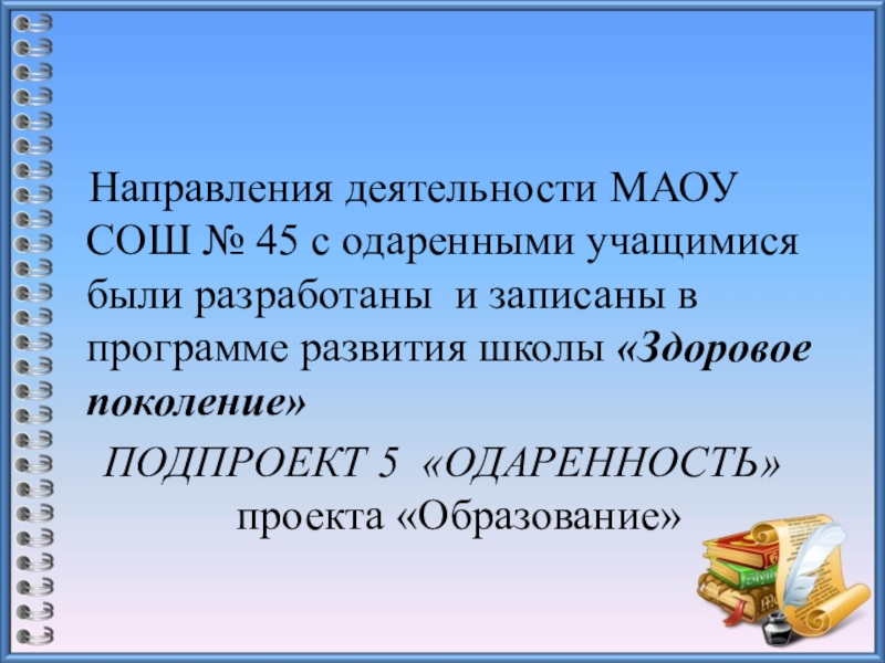 Слайд 10 Направления деятельности МАОУ СОШ № 45 с одаренными учащимися