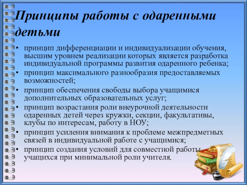 Слайд 7Принципы работы с одаренными детьми
