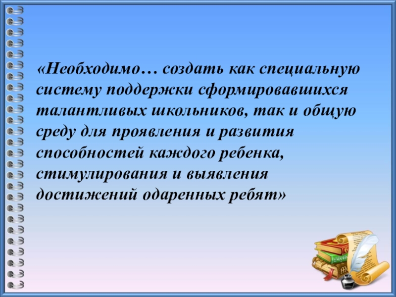 Слайд 3 «Необходимо… создать как специальную систему поддержки сформировавшихся талантливых школьников,
