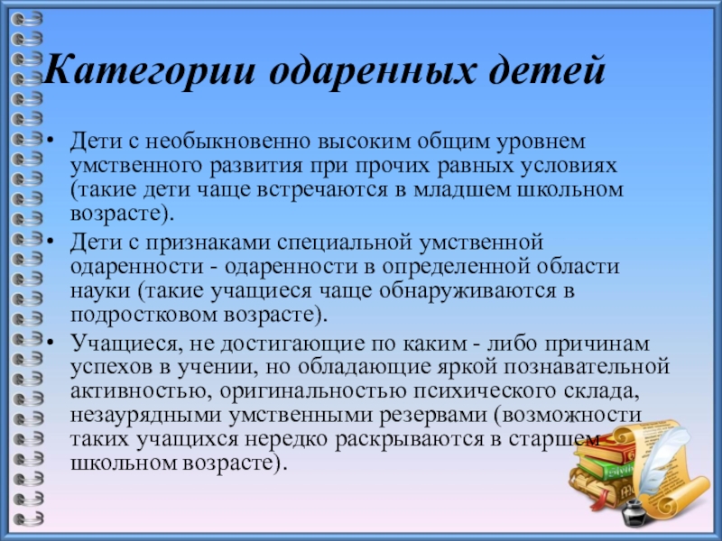 Слайд 5Категории одаренных детей