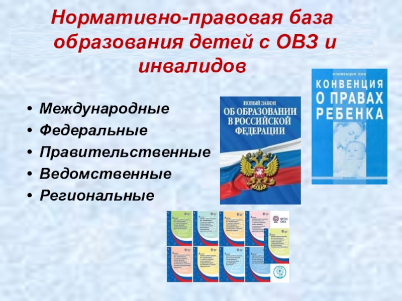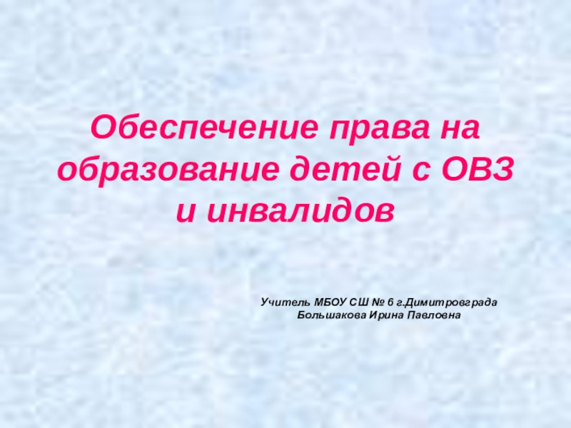Слайд 1Обеспечение права на образование детей с ОВЗ и инвалидов