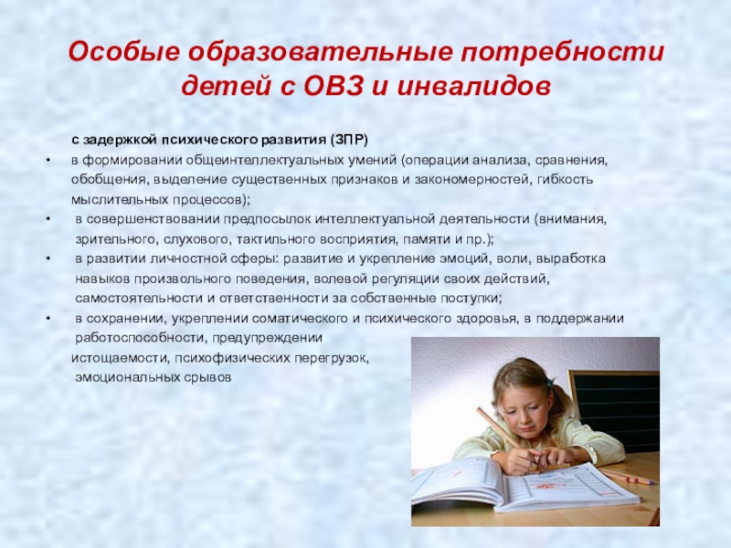 Слайд 12Особые образовательные потребности детей с ОВЗ и инвалидов