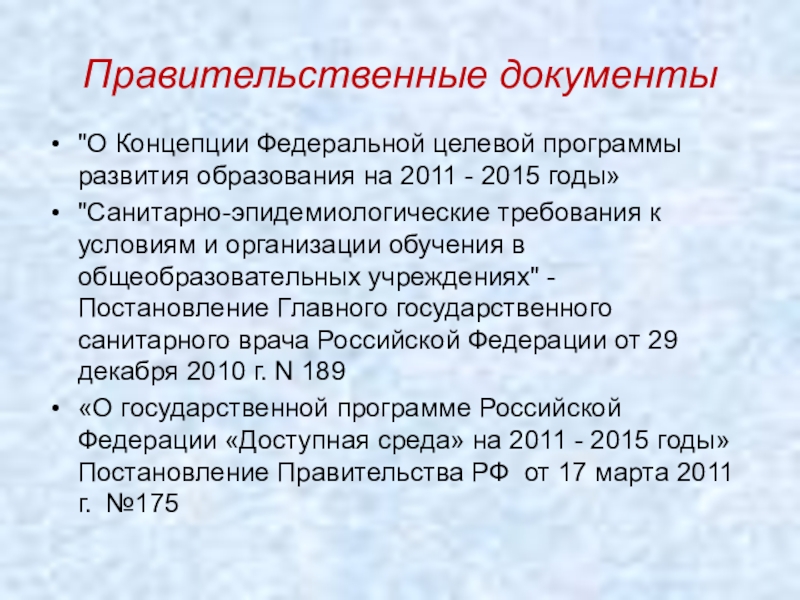 «О государственной программе Российской Федерации «Доступная среда» на 2011 - 2015 годы» Постановление Правительства РФ от 17 марта 2011 г. №175