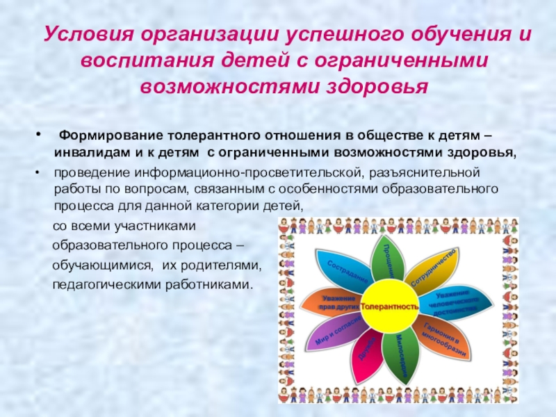 Формирование толерантного отношения в обществе к детям –инвалидам и к детям с ограниченными возможностями здоровья,