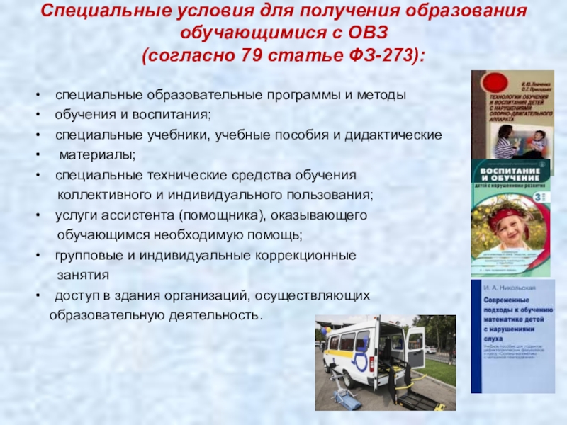 Слайд 23Условия организации успешного обучения и воспитания детей с ограниченными возможностями здоровья