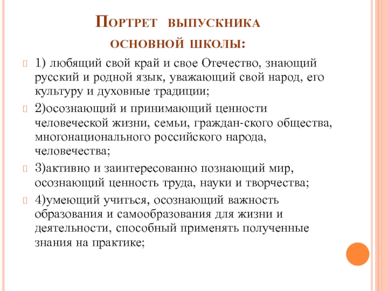 7.Принципиальное отличие нового образовательного стандарта. Портрет ученика ООО.
