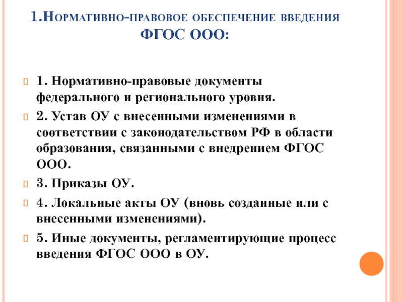 1.Нормативно-правовое обеспечение введения ФГОС ООО.