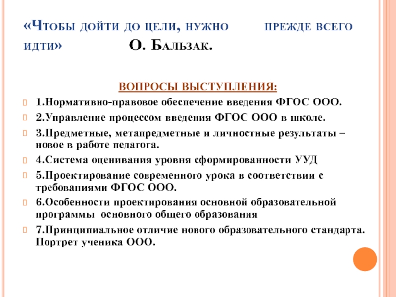 ВОПРОСЫ ВЫСТУПЛЕНИЯ: