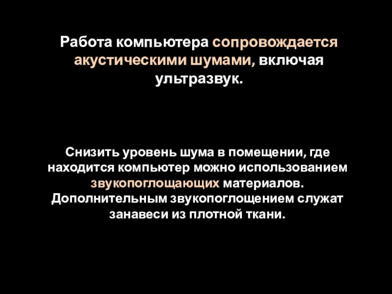 Слайд 18Работа компьютера сопровождается акустическими шумами, включая ультразвук.