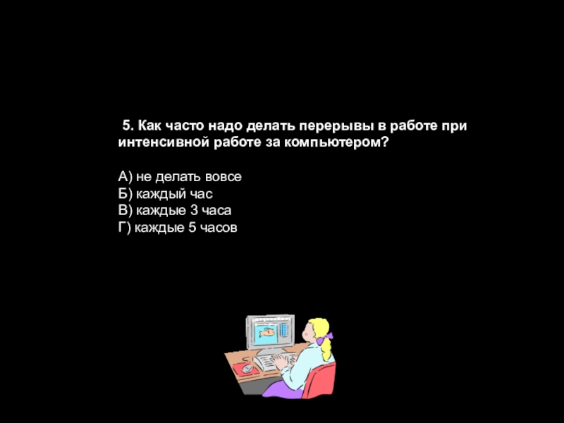 Слайд 48 5. Как часто надо делать перерывы в работе при интенсивной