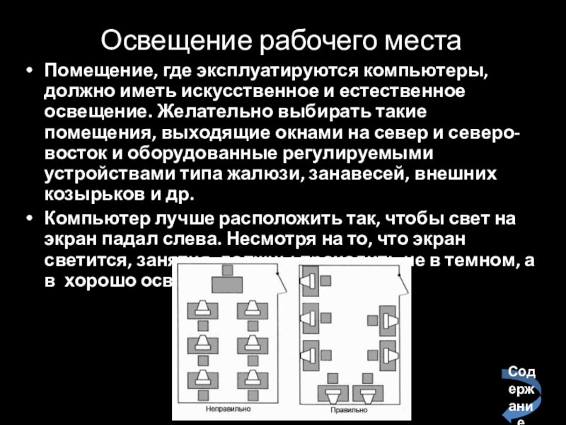 Помещение во время работы с компьютером должно быть хорошо освещено. Освещение