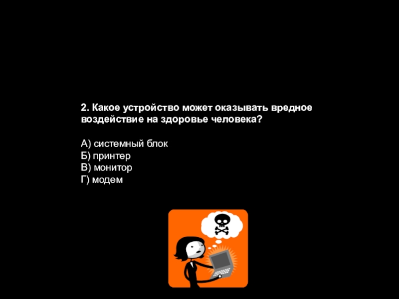 Слайд 452. Какое устройство может оказывать вредное воздействие на здоровье человека?