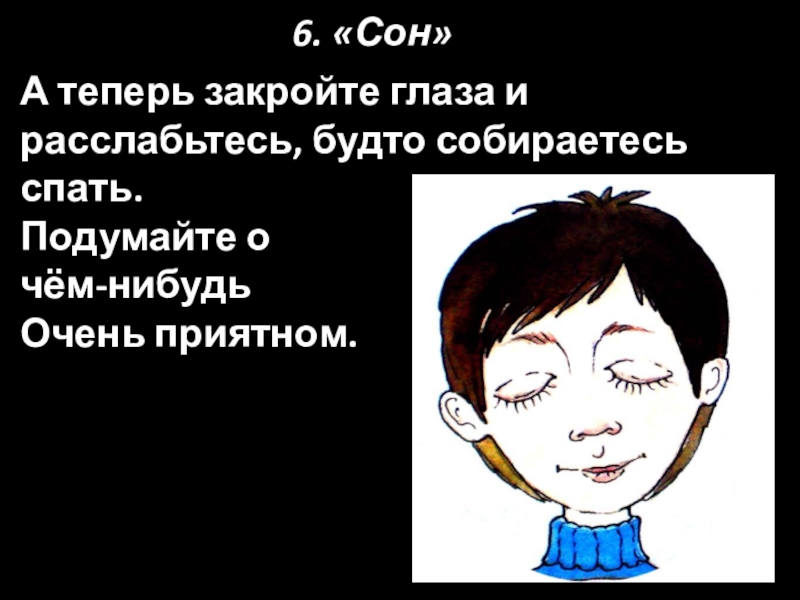 А теперь закройте глаза и расслабьтесь, будто собираетесь спать.